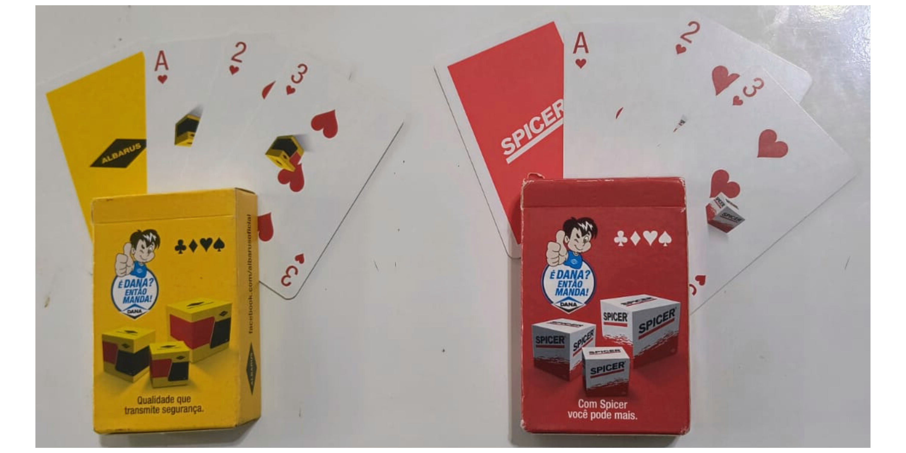 Afim de homenagearmos esta grande empresa, solicitamos a vocês equipes que nos apresentem dois baralhos completos distribuídos pela empresa, cada um com suas 55 cartas de baralho, conforme objetos expostos no QG Central.