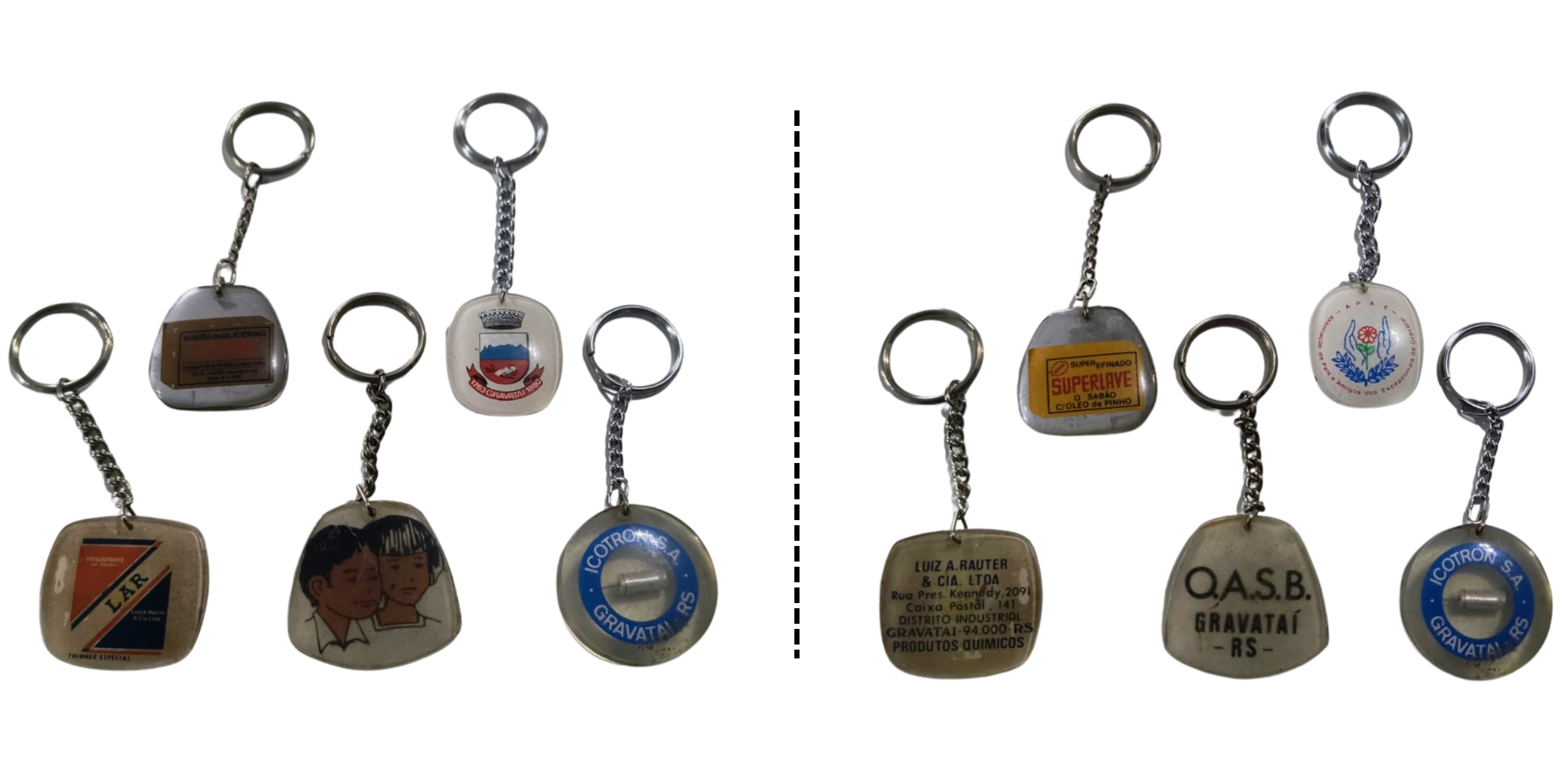 Logo que fomos definidos como a organizadora da 14ª Gincataí, tratamos imediatamente de darmos aquela revirada básica em nosso acervo em busca de alguns chaveiros. Eis que logo nos deparam com vários exemplares, mas para esta tarefa em especial selecionamos cinco, sendo três alusivas a empresas, e outros dois a instituições do município.