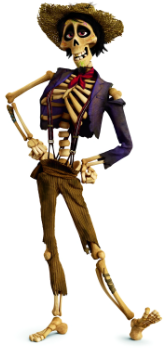 > Miguelito: protagonista que deverá dublar e interagir com Héctor, usando moletom vermelho com capuz, calça jeans e maquiagem facial de caveira mexicana. Deve portar um violão real.